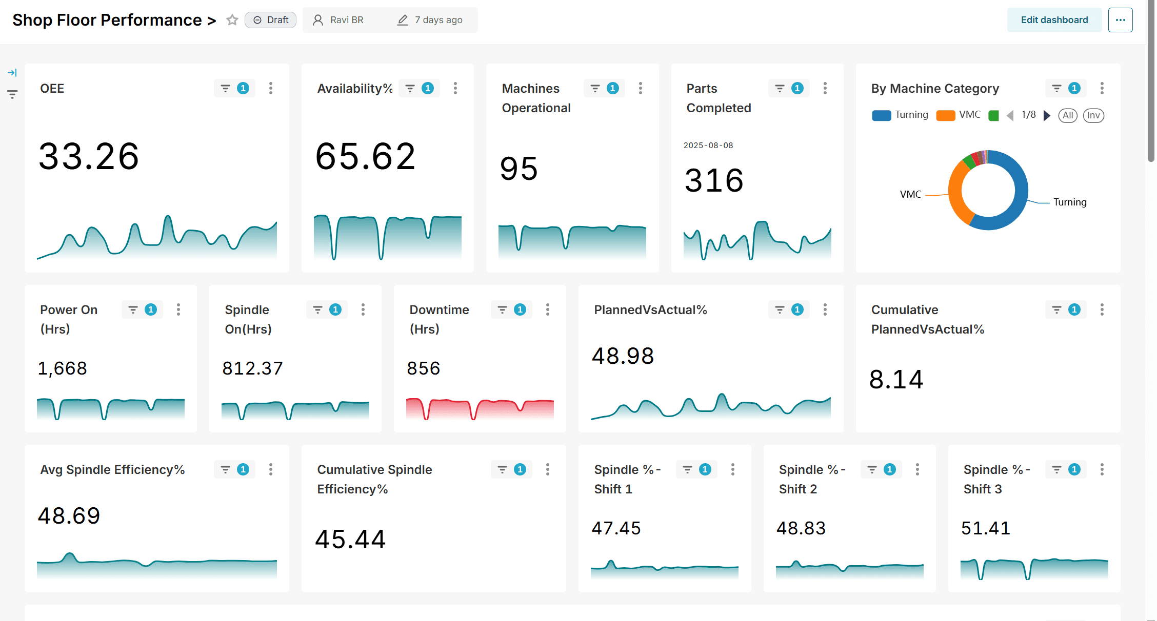 Real-time visibility of machine performance, downtime, and utilization trends.